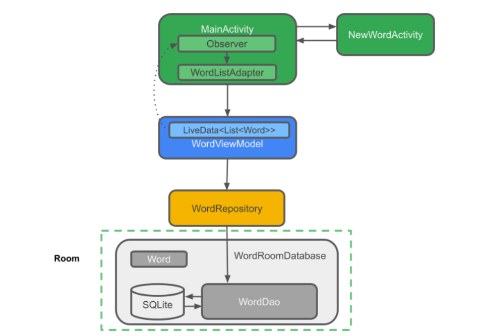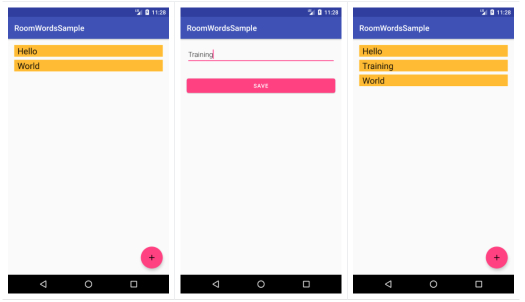 In this codelab you’ll build an Android app in Kotlin that uses Android Architecture Components (RoomDatabase, Entity, DAO, AndroidViewModel, LiveData) together with Kotlin coroutines. This sample app stores a list of words in a Room database and display